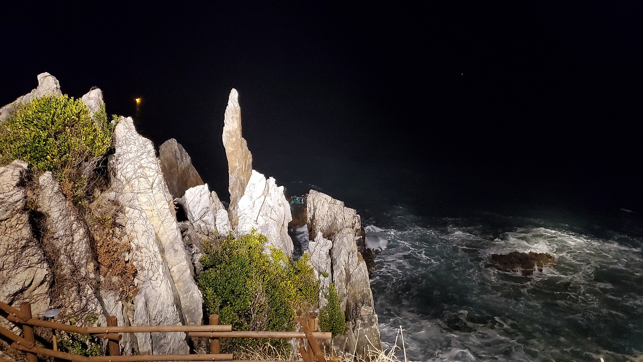 촛대바위 주변에 솟아오른 약10여 척의 기암괴석은 동해바다와 어울려져 절경을 연출하며, 그 모양에 따라 거북바위, 두꺼비바위, 부부바위, 코끼리바위, 형제바위 등으로 불린다. 이곳의 바위군(群)은 동해시 남서부에 분포된 조선누층군의 석회암이 노출된 것이다. 석회암은 화학적 풍화작용의 영향을 많이 받는데, 이 일대의 석회암이 토양 밑에 있을 때 지하수의 작용으로 용해되어 독특한 모양을 이루었고, 이것이 바닷물에 의해 노출되어 지금과 같은 절경을 이루게 되었다. 조선시대 도체찰사(都體察使)로 있던 한명회(韓明澮)는 이곳의 바위군(群)이 만들어 내는 절경을 가리켜 '미인의 걸음걸이'를 뜻하는 '능파대(凌波臺)'라고도 하였다.