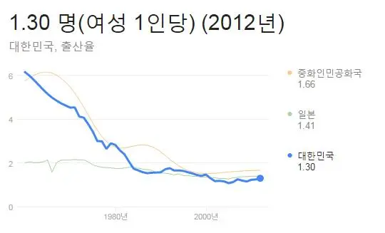 참고로, 한국의 출산율은 출산율 정책이 실패했다고 평가되는 국가들보다도 낮다. 그런데 이명박 정부나 박근혜 정부는 이에 대해 아무런 조치도 취하지 않았으며, 현재도 아무런 행동을 취하지 않고 있다. 오히려 복지를 축소하고 있다. 애는 낳으라면서 복지는 축소하고 있다. 앞뒤가 안맞다. 능력도 없고, 의지도 없다.