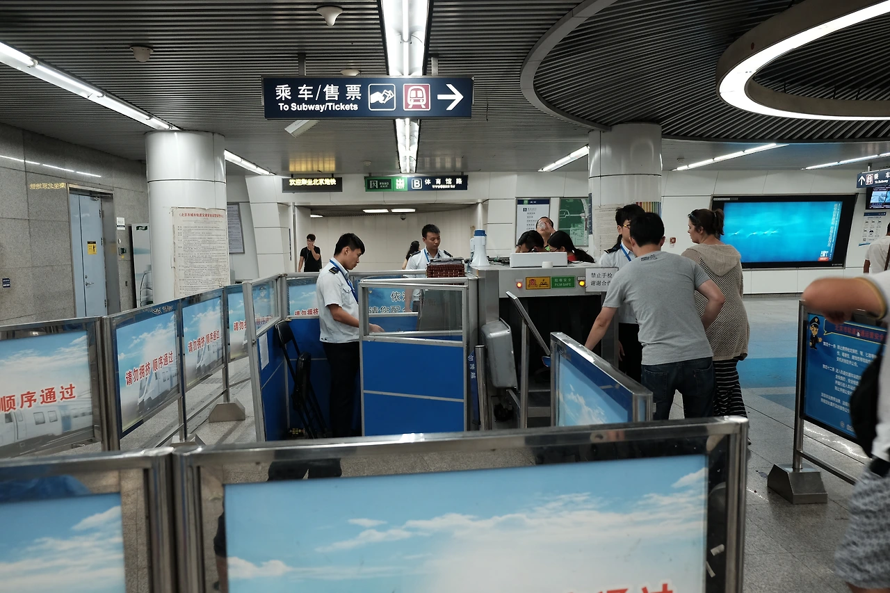중국에서 짐 검사를 하는 곳들의 특징들은 다음과 같다. 사람이 많이 모이는 곳(1), 값비싼 사회시설이 있는 곳(2), 귀중한 문화재들이 있는 곳(3). 지하철의 경우는 (1)과 (2)에 해당한다. 천안문 광장에 들어갈 때도 짐 검사를 하는데 그 곳은 (1), (3)에 해당한다. 이 기준은 공식적인 건 아니고, 내가 여행다니면서 생각해본 기준이다.