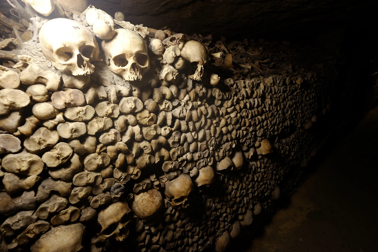 이는 루이 16세의 막장 행보에 의한것으로, 당시 국왕이던 루이 16세가 도시 꾸미기 정책을 실시하며 파리와 파리 인근의 어울리지 않는 모든 구조물 을 철거하였는데, 이중에는 묘지도 있었다... 그 결과로 나온게 프랑스의 카타콤.[2][3]. 로마 식민지 시절 사용되지 않았던 폐 채석장을 사용했다 한다. 묻혀있는 유골은 대략 500~600만구. 흥미로운 것으론 2차 세계대전 당시, 나치 독일군과 프랑스 레지스탕스군이 이곳에 작전본부를 세웠다고한다. 두 작전본부의 거리는 불과 몇km도 되지 않았지만 워낙 미로같은 카타콤의 구조 때문에 서로 만나지는 않은 모양.[4] 불과 몇십년전만 해도 다른 카타콤과는 달리 해골이 가득한 산을 만들정도로 정리되지 않은 모습이었는데 지금은 수년에 걸친 보수 끝에 어느정도 정리가 되었다. 어느정도.[5] 또한 보수 후 여러 통로를 봉쇄하였는데, 여행객들이 길을 잃지 않기 위한 것이다. 마치 공포 영화에서나 볼 것 같은 기괴한 모습을 볼 수 있는데, 이곳에서 홀로 모험을 강행하다가 실종된 사람들도 적지 않다고 한다. 나중에 시신도 건지지 못했다는 의미. (나무위키)