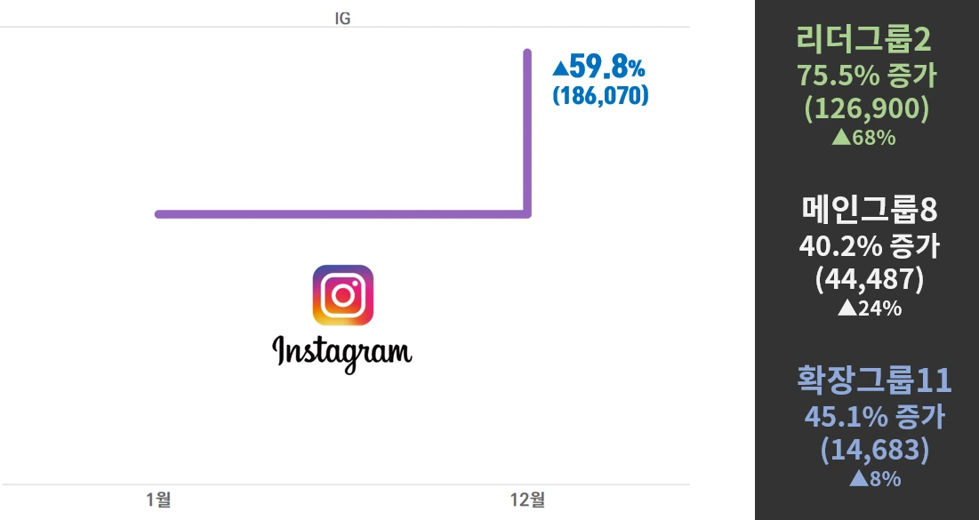 이번에 살펴볼 데이터는 지난 2020년 한 해 동안 실질적으로 팔로워수가 성장하고 있는 SNS 채널의 트렌드를 살펴 보고자 한다.