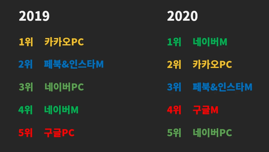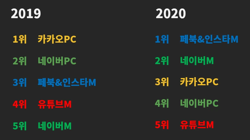 2개년 배너광고 TOP 5 채널 흐름을 보면