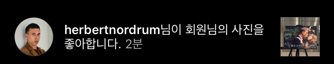 일단 사랑해. 에이반드. 영화보고 반해서 헐버트 노르덤 배우님 인스타 팔로우 했는데.. 내 포스팅에 좋아요 눌렀자나...