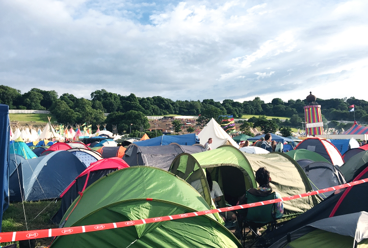 내가 텐트를 친 곳은 더 파크(The Park)라는 스테이지가 있는 쪽과 기부금으로 운영되는 마사지/요가/테라피 등이 제공되는 힐링필드(Healing Field)의 중간 정도였다. 찾아갈 땐 너무 멀리 들어갔다고 생각했었는데 캠핑존이 이 정도면 좋겠다고 가기 전에 염두해두었던 장소와 거의 일치했다. 메인스테이지인 피라미드 스테이지(Pyramid Stage)와는 거리가 좀 있었지만, 페스티벌의 어디를 가더라도 너무 멀지 않은 곳에 텐트를 쳤다는 건 글라스톤베리의 넓디 넓은 부지에서 꽤나 괜찮은 장소를 골랐다는 뜻이었다.