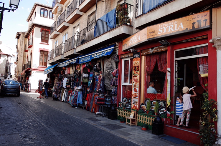 그래도 숙소를 나와 굽이굽이 골목길을 따라 마주친 이슬람 사람들 특유의 기념품을 판매하는 길에 다다랐을 때, 그 인상은 조금 달라졌다. 이 때까지 보았던 스페인의 느낌이 아닌 아랍 특유의 것이 섞여 이국적 분위기를 내었기 때문이다. 곳곳에 있는 케밥집과 시샤(후카라고도 하는 물담배) 카페들이 줄지어 있는 그라나다의 길엔 작은 아랍이 있었다.