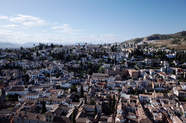 숙소에 도착하자마자 나스리궁 입장시간에 가까웠기 때문에 짐을 풀자마자 바로 알함브라로 향했고, 난 또 잘 알지도 못하는 길을 지도도 보지 않고 동네처럼 무조건 직진해 가기 시작했다. 알함브라 궁전엔 일단 가야했으니까. 가는 족족 발견한 표지판을 확인하고 가다 서다를 반복해 티켓오피스 발견! 다행히 입장시간에 맞추어 나스리궁에 도착했다. 오는 길에 만난 정원의 풍경도 충분히 보면서. 알함브라 자체가 높은 지대에 있기도 했지만, 나스리궁을 입장하기 위해 줄을 선 길에서는 그라나다의 전망이 한눈에 펼쳐져 있었다.