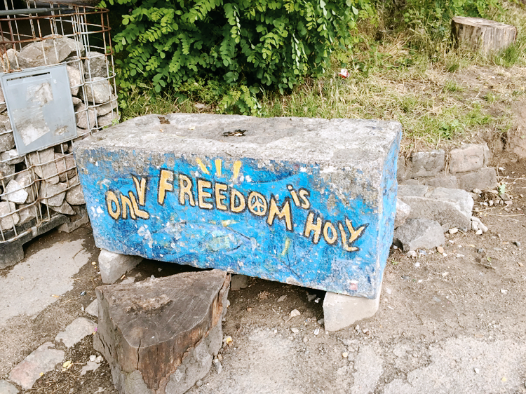 크리스티아나는 곳곳에 마리화나를 파는 사람들이 있기 때문에 사진찍는 것을 금지하며, 이 판매상으로 보이는 사람들의 대부분은 얼굴이 노출되지 않도록 까만 마스크를 하고 있었다. '사진찍지 말고 그냥 즐겨'라고 벽에도 여기저기 그래피티가 되어 있었다. 독특한 느낌을 주는 이 동네에는 실제로 사람들이 살고 있는 주거지역이어서, 안 쪽으로 쭉 더 가다보면 집들이 강가에 접해있다.