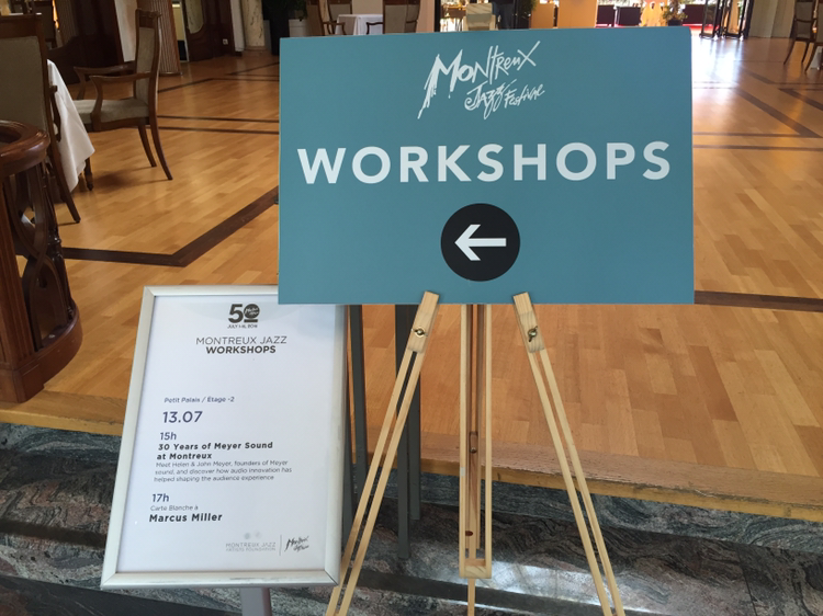 몽트뢰의 무료로 진행되는 프로그램 중에 워크샵도 있는데, 꼭 가보고 싶었던 것이 마커스밀러의 워크샵이었다. 스트라빈스키에서 하는 공연 전에 들러보기 좋은 5시에 예정되어 있었고, 베이스나 재즈 퍼포먼스에 관심이 많은 사람들로 워크샵을 하는 강당이 가득찼다. 1층에 3-40명 정도, 2층도 비슷한 수를 수용할 수 있을 정도의 규모로 진행된 워크샵에서 마커스밀러는 본인이 세션으로 참여했던 시절부터 마일즈 데이비스와 작업했던 때, 그리고 솔로 활동 때까지를 언급하며 연주를 곁들여 진행했다.