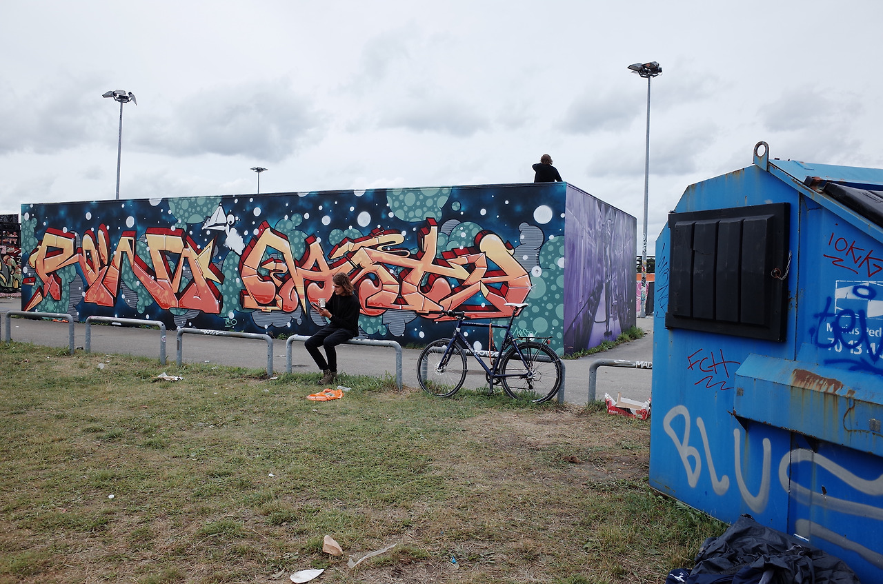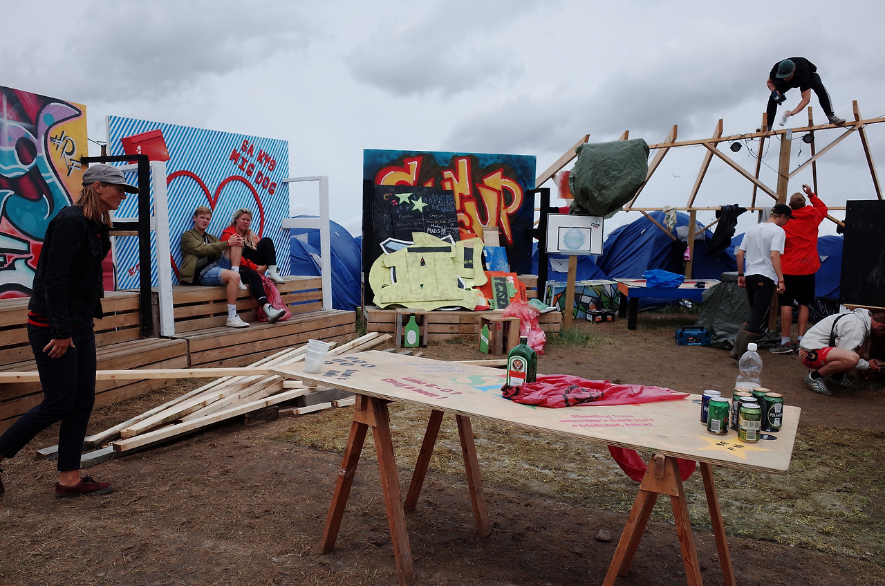 글로리아 스테이지 주변과 스테이지를 구성하고 있는 목조 컨테이너 외벽에는 그래피티로 꾸며져 있었다. 생각 외로 전체적인 공간에서 그래피티를 활용해 꾸며진 곳이 상당 부분을 차지했고, 정갈한 모양을 하고 있는 컨테이너 박스와 설치된 조형물과는 상반되게, 페스티벌의 히피적인 느낌을 그래피티로 표현하고 있는 듯 했다. 마켓이나 스테이지의 전체적인 디자인과는 사뭇 다른 느낌의 디자인을 같은 공간에 배치하는 의도는 뭔지, 아니면 이렇게 이면성을 대치시키는 게 덴마크인들의 방식인지 궁금해지기 시작했다. 답은 어디서도 얻을 수 없었지만.