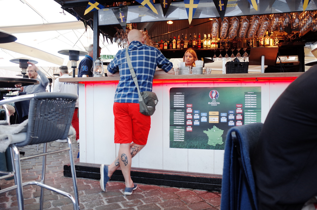 짐을 풀고 다시 나선 말뫼의 풍경은 노란색으로 칠해진 조그마한 번화가, 음식점이 모여있던 광장으로 기억에 남는다. 신발 가게의 부츠 간판이 정겨운 느낌을 주었다. 광장에 있는 대부분의 레스토랑이 야외에 테이블을 놓고 사람들을 기다리고 있었다. 저녁시간이 되자 하나 둘 테이블이 채워지기 시작했다. 유로2016의 준결승전을 시청하는 사람들로 여기저기 가득한 사람들이 경기 중계에 환호하기도, 야유하기도 했다.