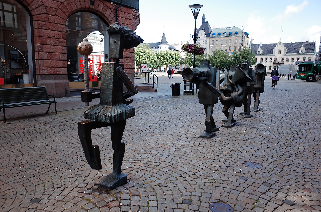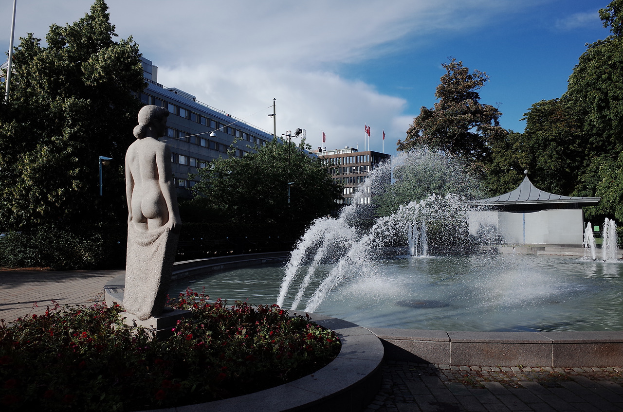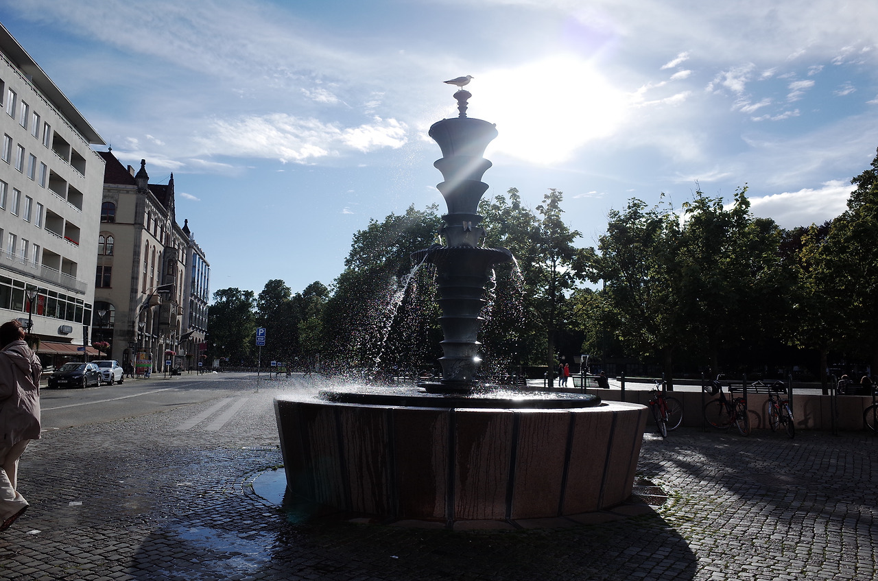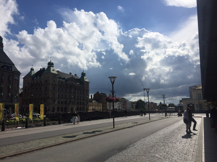 다음 날 스톡홀름으로 가는 기차를 타러 가는 길에 다시 곁눈질로 마을을 한 바퀴 더 둘러보았다. 어제 비어있던 길가에 아침에 서는 장 준비로 바쁜 사람들이 보인다. 분수 근처의 카페에서 간단히 아침식사를 한 나는 또 다시 떠날 채비를 한다.