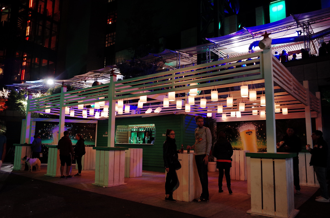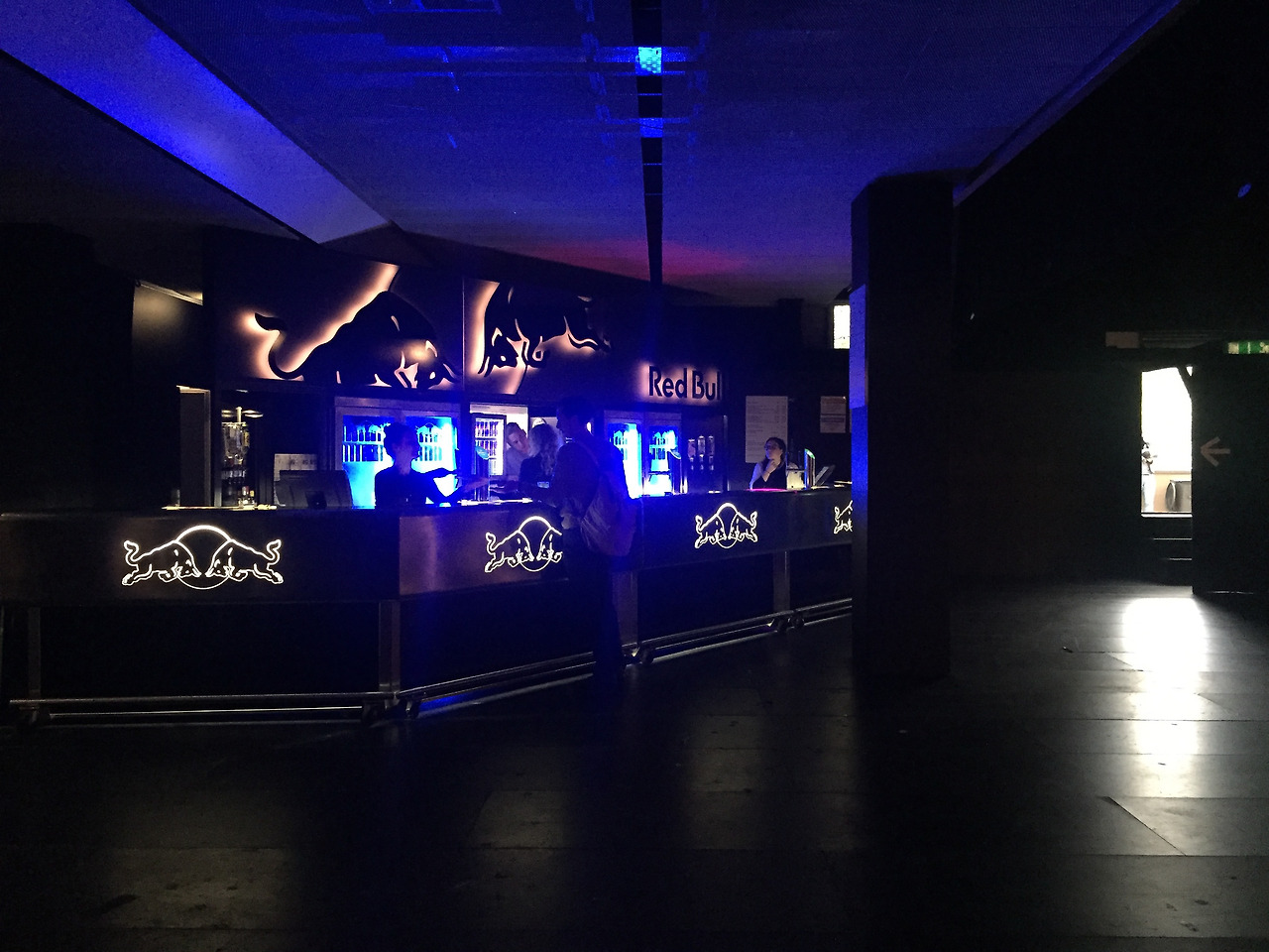 에코백과 티셔츠를 사고, 티켓을 입장팔찌로 교환하고 나니 공연시간이 다가왔다. 재즈랩은 블랙박스 씨어터 형태의 작은 규모였고, 전부 스탠딩으로 공연을 볼 수 있는 곳이었다. 공연장 안 쪽에 레드불에서 운영되는 듯한 바가 자리해 있어서 공연을 보면서도 내부에서 음료를 마실 수 있게 되어 있었다.