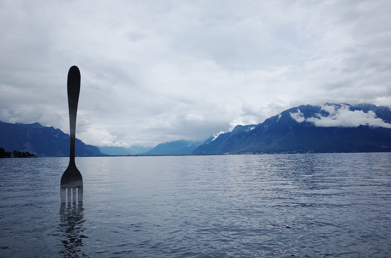 늦게 눈을 붙인 탓인가, 이유도 없이 피곤한 아침이었다. 몸을 일으켜 나갈 준비를 하고 브베 시내로 나갔다. 카페에 앉아 커피 한 잔을 마시며, 어제보다는 조금 나아진 날씨를 구경해본다. 구름은 자욱했지만 오락가락하던 비는 그쳐있었다. 레만호에는 큰 포크를 형상화해둔 조형물이 호수 쪽으로 꽂혀있고, 포크 맞은 편 쪽으로는 찰리채플린의 동상이 있었다. 그 주변에 모여 사진을 찍는 사람들의 얼굴은 우중충한 날씨완 상관없이 환하기만 했다.