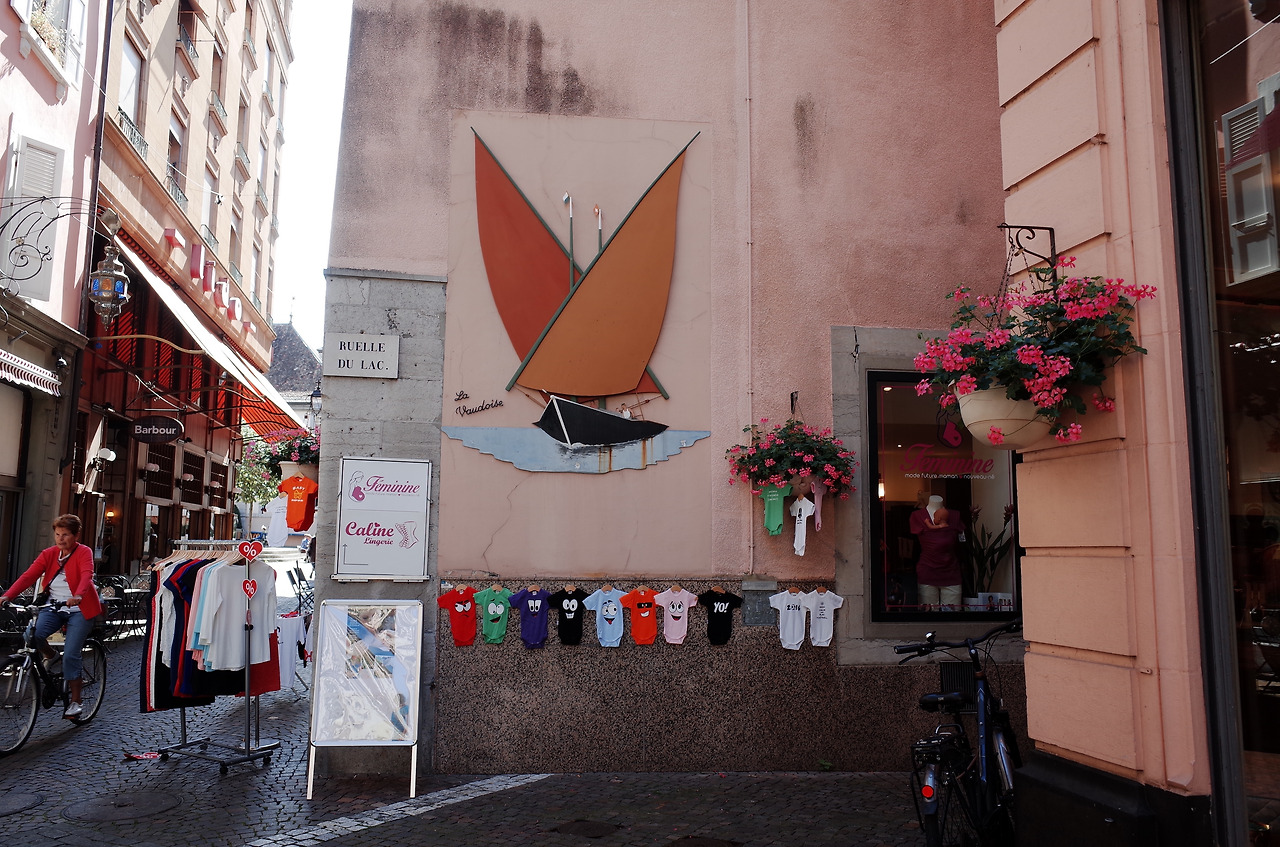 며칠동안 내내 꾸물꾸물하던 하늘에 해가 떴다. 오랜만에 화창한 날이었다. 햇빛이 내려쬐니 빛을 잃었던 것처럼 보이던 브베 동네가 알록달록하게 보이기 시작한다. 그렇게 내리 쬔 햇빛에 색이 입혀진 이 동네를 조금 더 구경하고 싶어져 좁은 시내 길을 구석구석 탐방하러 나섰다. 좁은 골목길 안에 모여있는 상점들이 사이좋게 문을 열어 서로 마주보고 있었다.