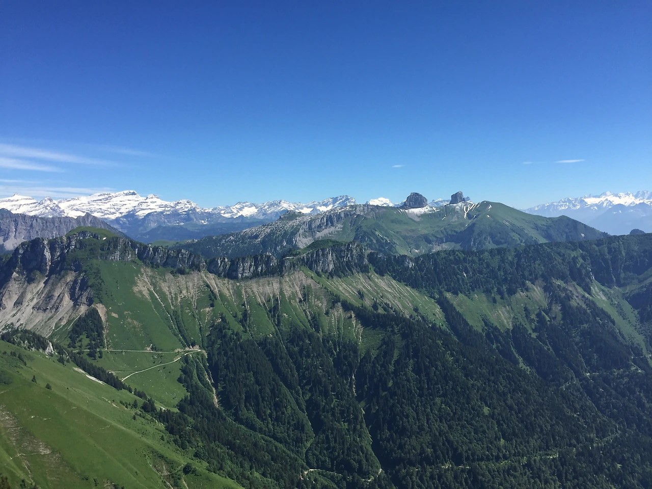 어느 순간 기차 안에 있던 사람들이 조용해지더니, 여기저기서 탄성소리가 터져나왔다. 기차 밖으로 펼쳐지는 풍경이 장관이었다. 기차가 산으로 올라가면서 알프스 산이 감싸고 있던 호수와 숲을 가까이 볼 수 있었고, 멀리서 보던 산을 눈 앞에서 맞이하는 느낌이었다. 스위스든, 프랑스든, 그 어딘가에서 보는 절경과 시원한 바람, 햇살. 모든 것이 완벽했다.