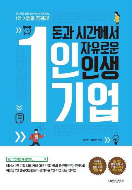 『돈과 시간에서 자유로운 인생 1인 기업』의 저자들은 1인 기업가로서 현재의 삶에 만족하며 살고 있다. 이 책은 서로 다른 나이대의 각기 다른 경력을 가진 두 사람이 함께 써 내려갔다. 한 명은 학벌도, 돈도, 부모의 지원도 뒷받침되지 않았지만 뛰어난 전략과 비장한 마음가짐으로 1인 기업을 알차게 운영하고 있는 1인 기업 컨설턴트다. 또한 네이버에서 1만 2천 명이 넘는 회원을 보유한 1인 기업가 커뮤니티 〈일인 기업가들의 공부방(일기공)〉의 운영자이기도 하다. 또 다른 한 명은 직장생활을 하다가 조직 내 사내 정치라는 어이없는 이유로 갑자기 퇴사한 후 야무지게 1인 기업가로 출판 컨설턴트를 하고 있는 워킹맘이다. 이 책의 저자들의 경험을 통해 시행착오를 최소화하고 더 나아가 실질적인 노하우를 벤치마킹하여 1인 기업가로서 더 빠르게 성장하는 방법을 배울 수 있다. <책정보 자세히 보기>