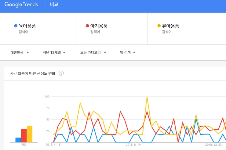 하지만 검색량은 아기용품과 유아용품이 더 많았습니다. 관심 가지고 확인하기 전까지는 고객들이 어떤 단어를 더 많이 사용하는지 잘 모를 수밖에 없습니다.