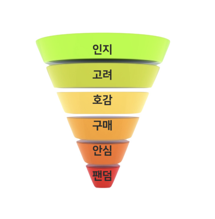깔때기 모양의 그림(콘연깔때기)은 세일즈 퍼널이라는 이름으로 불리는데 제가 활용하는 방식에 맞춰서 단어들을 적절히 의역해서 사용하고 있습니다.