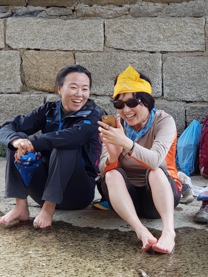 테이핑을 안 했다고 하니, 아무런 거리낌 없이 테이핑도 손수 해주고... 먼저 간 일행은 구간구간마다 연락하며... 응원해 주고, 빠른 걸음임에도 처음 참가하는 이를 위해 발맞추어주고, 처음 밤새 길을 걸어서인지?