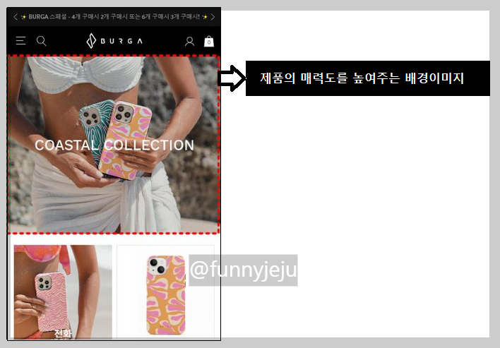 배경이미지를 통한 상품 매력도 증가 ( 출처 : BURGA 홈페이지)