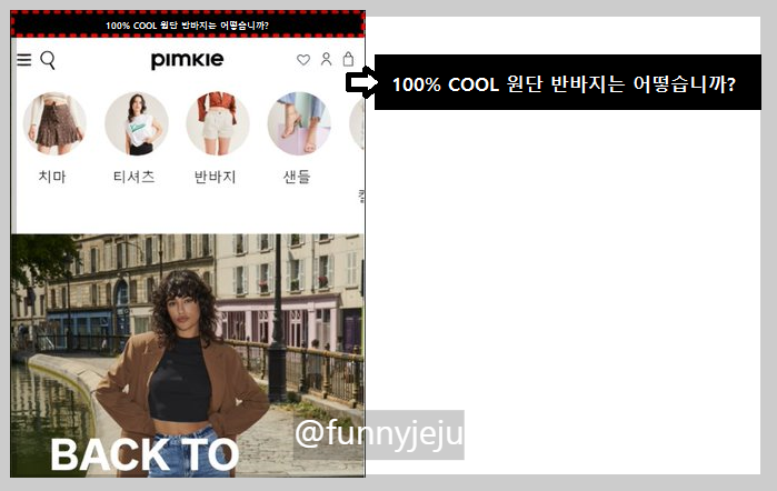 질문을 통한 판매유도 (출처 : PIMKIE 홈페이지)
