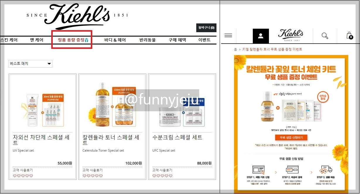 무료 샘플 사은품 (출처 : 키엘 홈페이지 캡처)