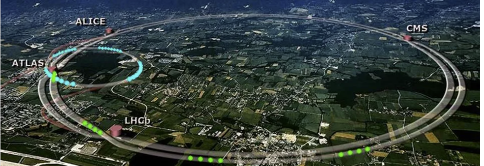 LHC. 직경 27km의 고리형 입자 가속기. 이곳으로 오는 비행기 위에서 내려다본 풍광을 머릿속에 그려 보아야 간신히 지금 보고 있는 가속기의 전체 모습이 상상된다.