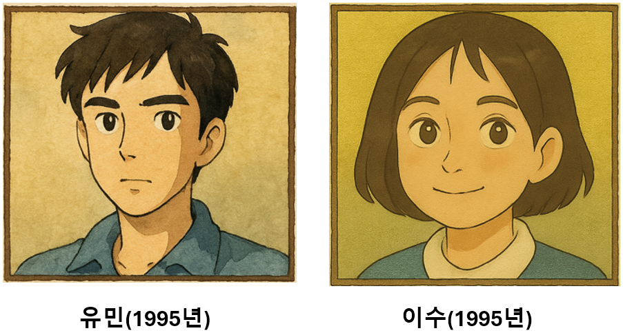 유민과 이수가 1995년과 2025년에 겪은 이야기를 시작합니다.