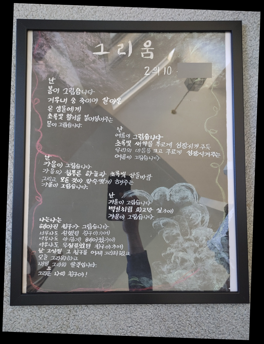 대학교 1학년 때 만나 반평생을 함께하고 있는 친구이자 아내가 '감사하게도' 새로이 표구까지 해주었다.