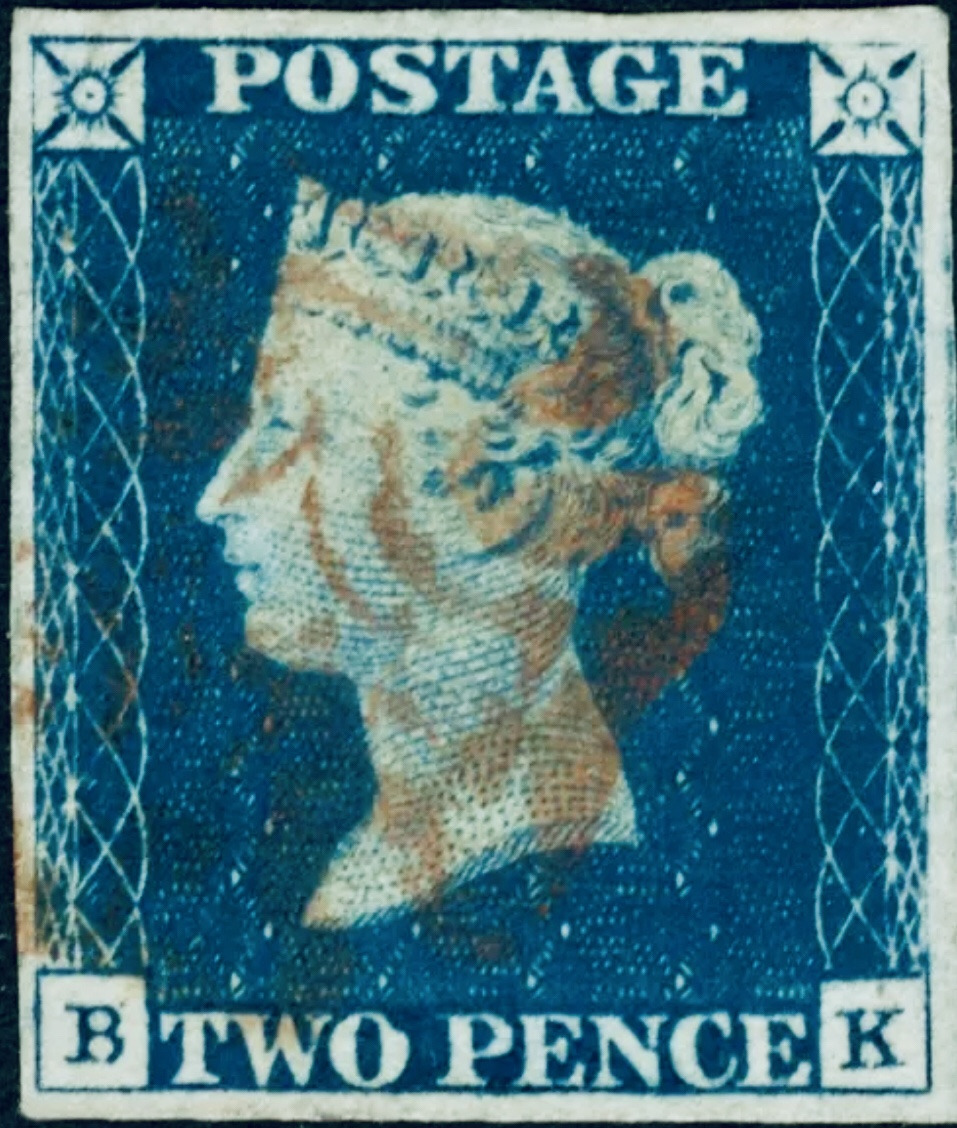 1840년 영국에서 발행된 세계 최초우표 패니블랙(Penny black)과 팬스 블루(Pence blue)우표