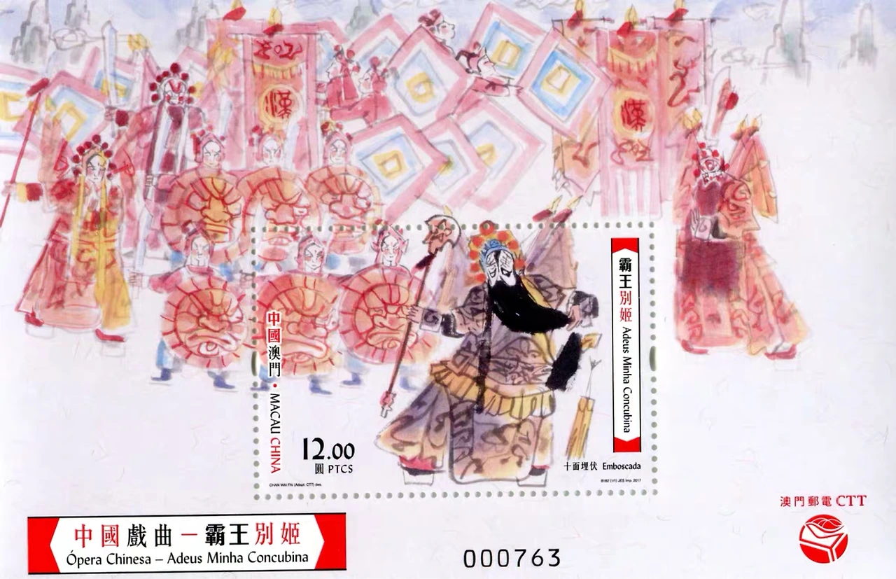 2017년 마카오와 2005년 홍콩에서 발행한 패왕별희 우표와 장국영 우표