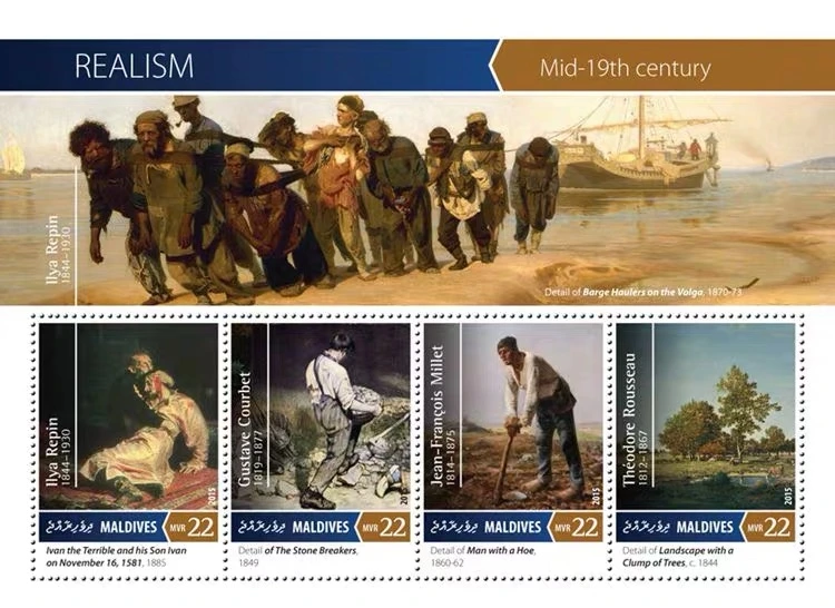 2. 쿠르베의 <돌을 깨는 사람들>의 남루한 차림의 노동자들은 고된 노동에 시달리고 있는 모습을 현실감 있게 표현했다. 사실 그는 귀스타브 쿠르베는 자기 자신을 야성적이고 거친 반란군으로 그리고 싶어 했지만, 사실 그는 스위스와 국경을 맞대고 있는 지역의 부유한 집안에서 태어난 부르주아 출신이었다. 그런 이유에 자신의 예술적 가치를 현실적인 인간의 모순과 고통 그리고 민중의 삶을 표현했다.