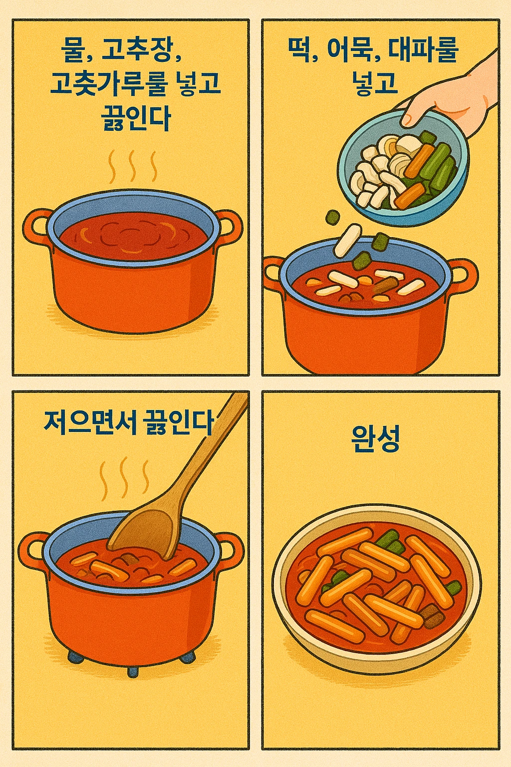 떡볶이 만드는 법을 네컷만화로 부탁해