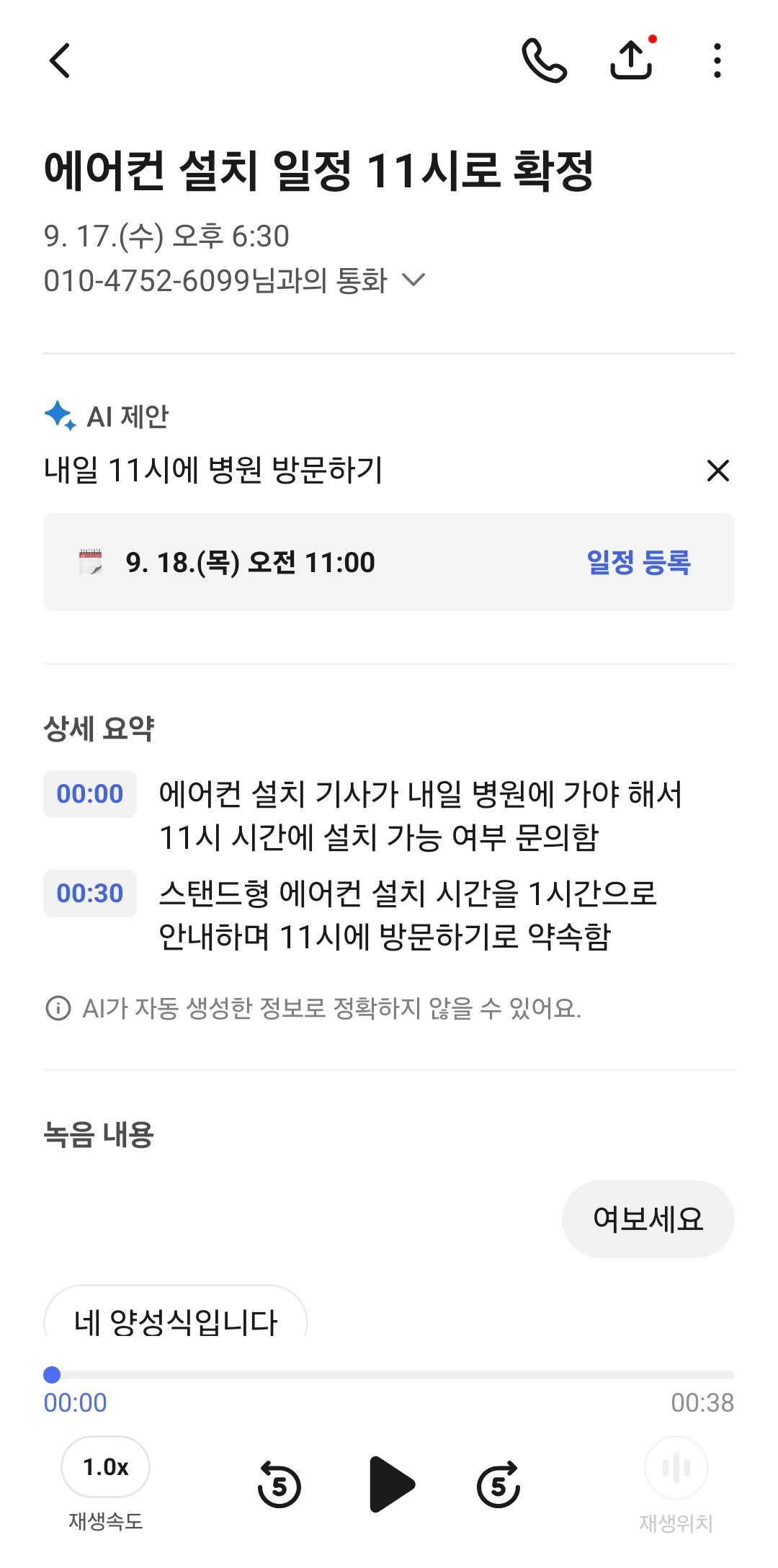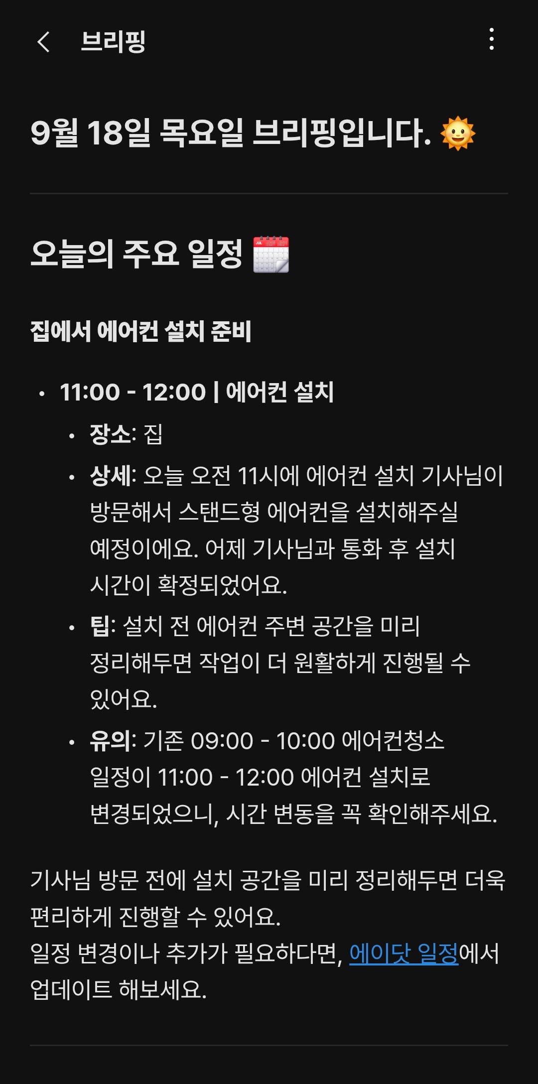 뿐만 아니라 SK텔레콤의 에이닷과 에이닷전화를 잘 활용하면 AI비서처럼 사용할 수도 있습니다. 일단 에이닷과 에이닷전화는 별도의 앱설치가 필요한데 통신사 상관없이 무료로 사용이 가능합니다. 에이닷전화를 설치하면 AI가 전화통화를 녹음한 후 텍스트로 변환해서 요약은 물론이고 일정이나 해야 할 일을 제안해 줍니다. 그렇게 제안해 준 일정을 구글캘린더에 등록하고 에이닷과 구글캘린더를 연동시켜 주면 등록한 일정이나 할 일이 있을 때 매일 아침 브리핑을 통해 리마인드 시켜줘서 좋습니다. 단순히 알림만 주는 것이 아니라 해당 일정이나 할 일에 맞게 어떤 준비를 해야 하는지 AI가 비서처럼 알려줘서 실제로 도움이 많이 됩니다.
