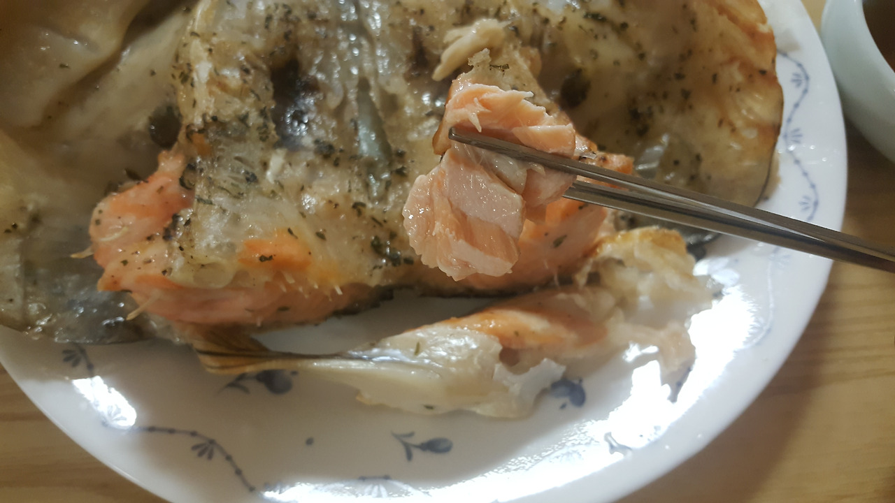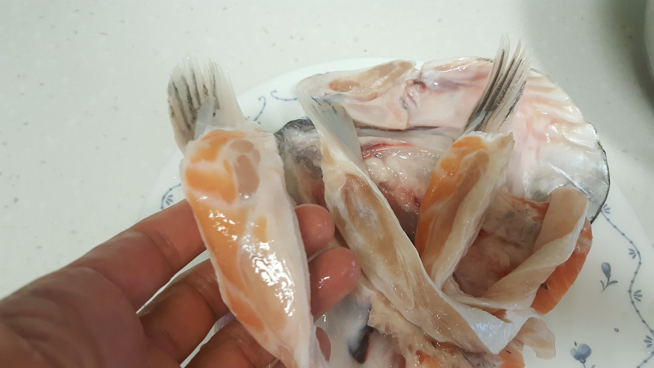 유물 발굴하듯 연어머리 발라 버려~~