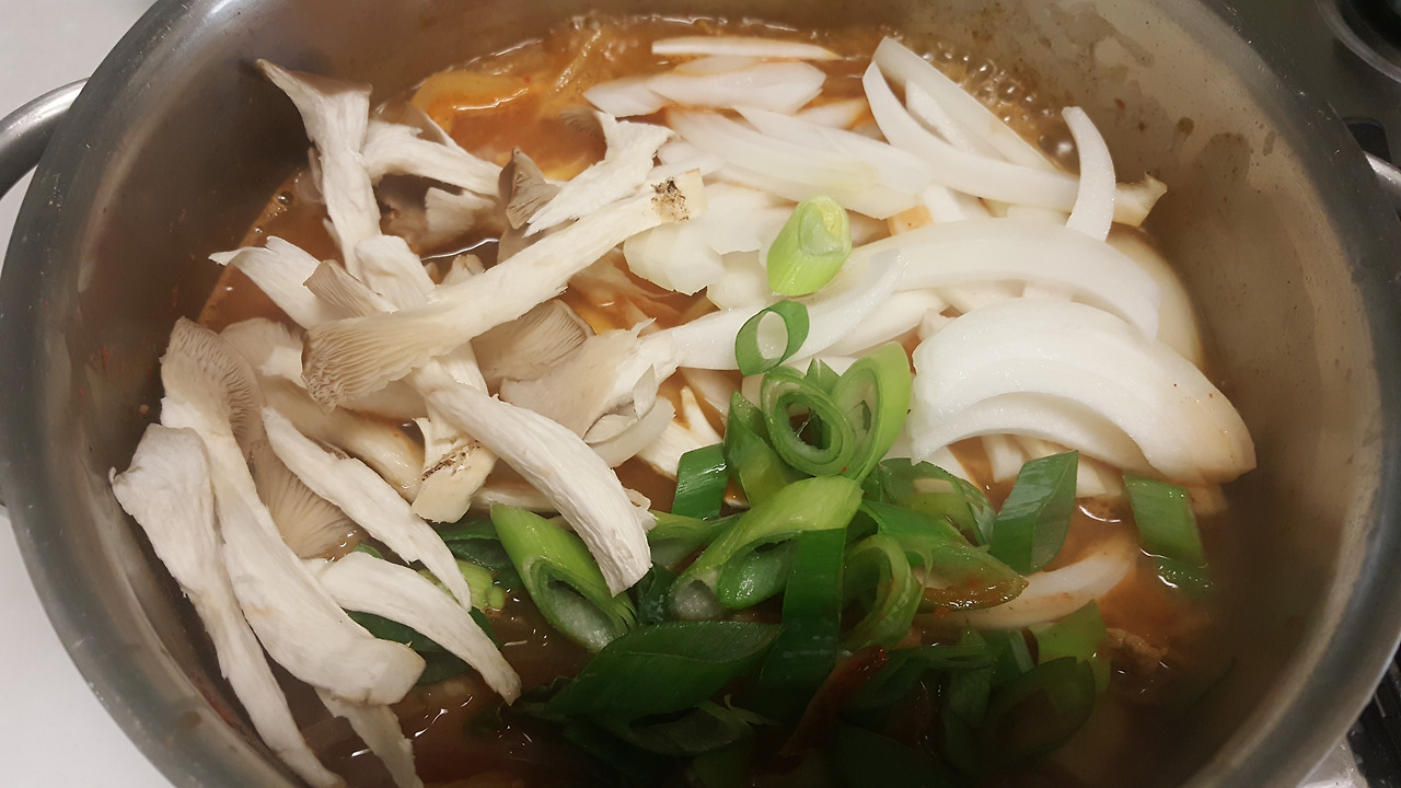 청양고추도 넣었는데 아이가 잘 먹는다. | 점심때 기름에 튀긴 옛날 통닭을 먹었더니 저녁에는 시원한 된장찌개가 생각이 나서 조치원 5일장에서 사온 애호박이랑 청양고추 그리고 부추넣고 끓�
