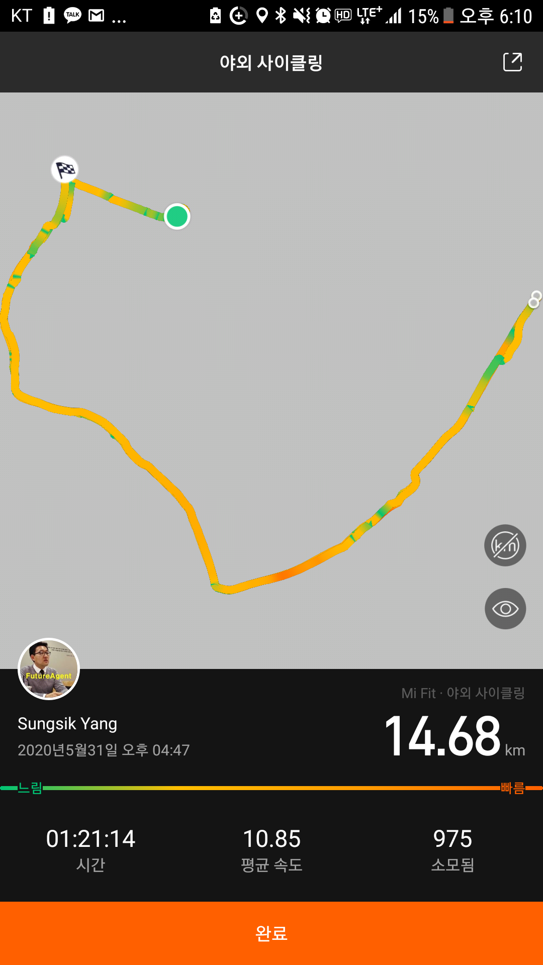 왕복 14.68km를 달려