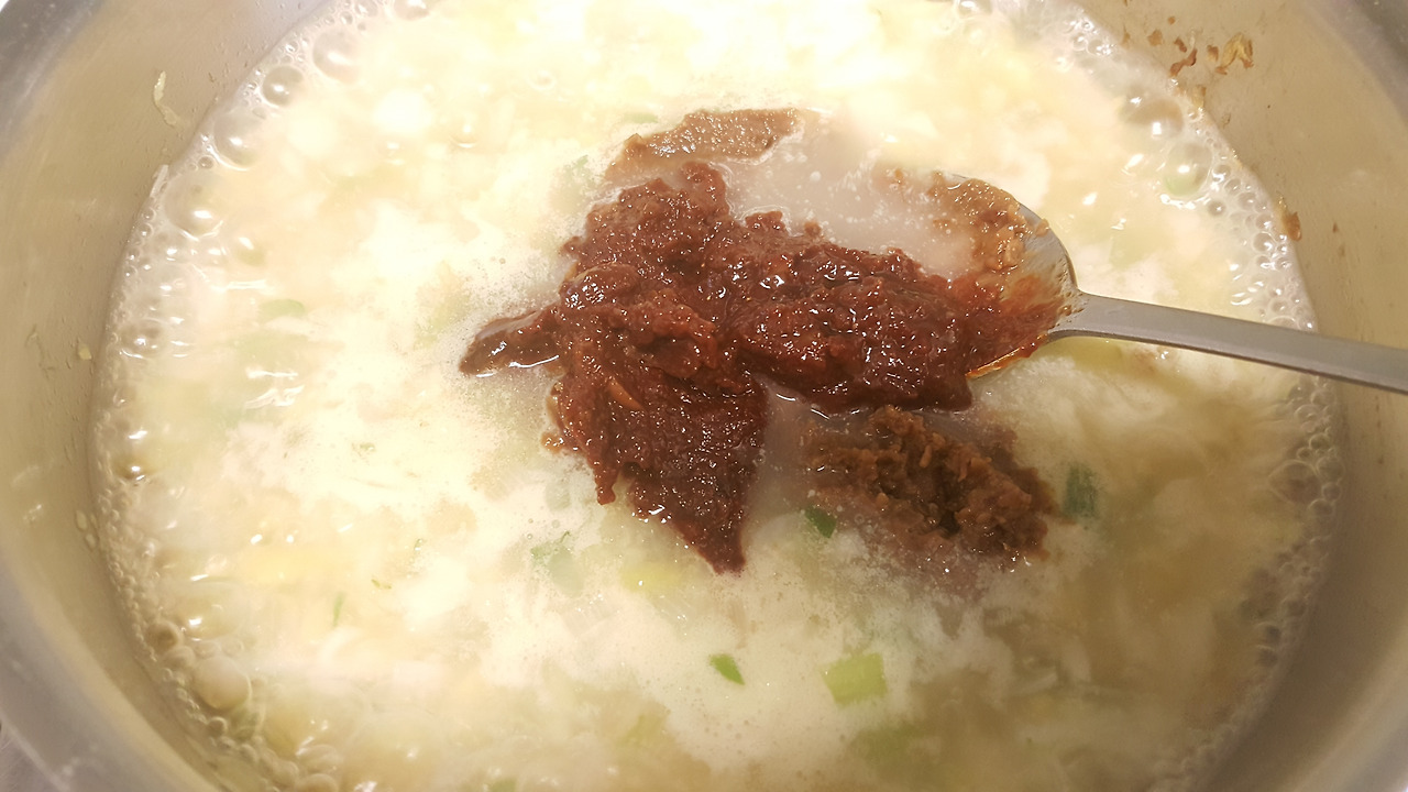 청양고추도 넣었는데 아이가 잘 먹는다. | 점심때 기름에 튀긴 옛날 통닭을 먹었더니 저녁에는 시원한 된장찌개가 생각이 나서 조치원 5일장에서 사온 애호박이랑 청양고추 그리고 부추넣고 끓�