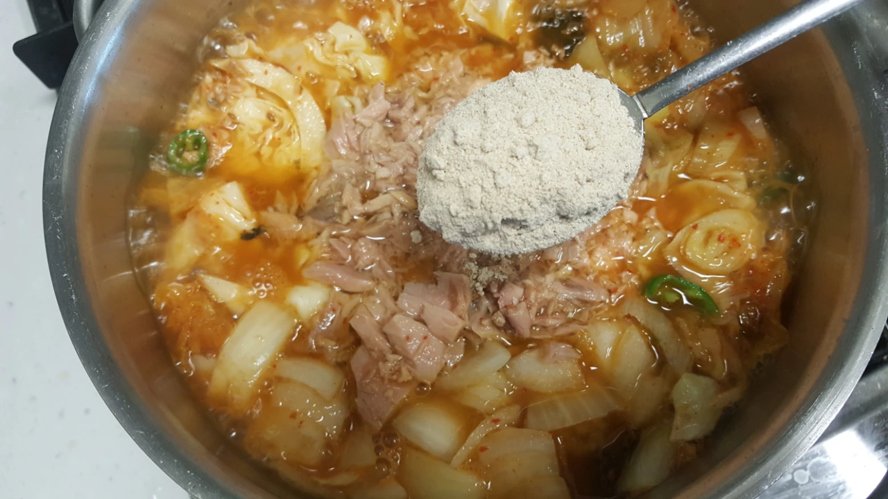 명절음식 넣고 끓인 잡탕찌개 맛이^^