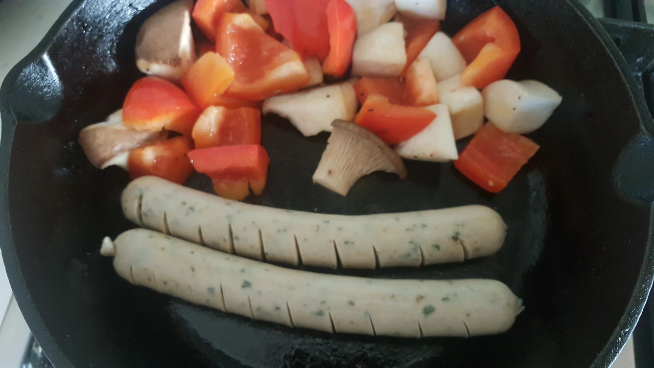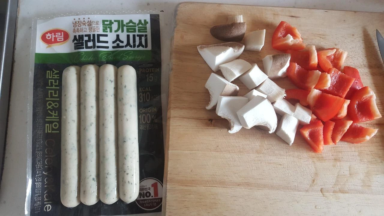 그리고 칼집낸 닭가슴살 소시지도