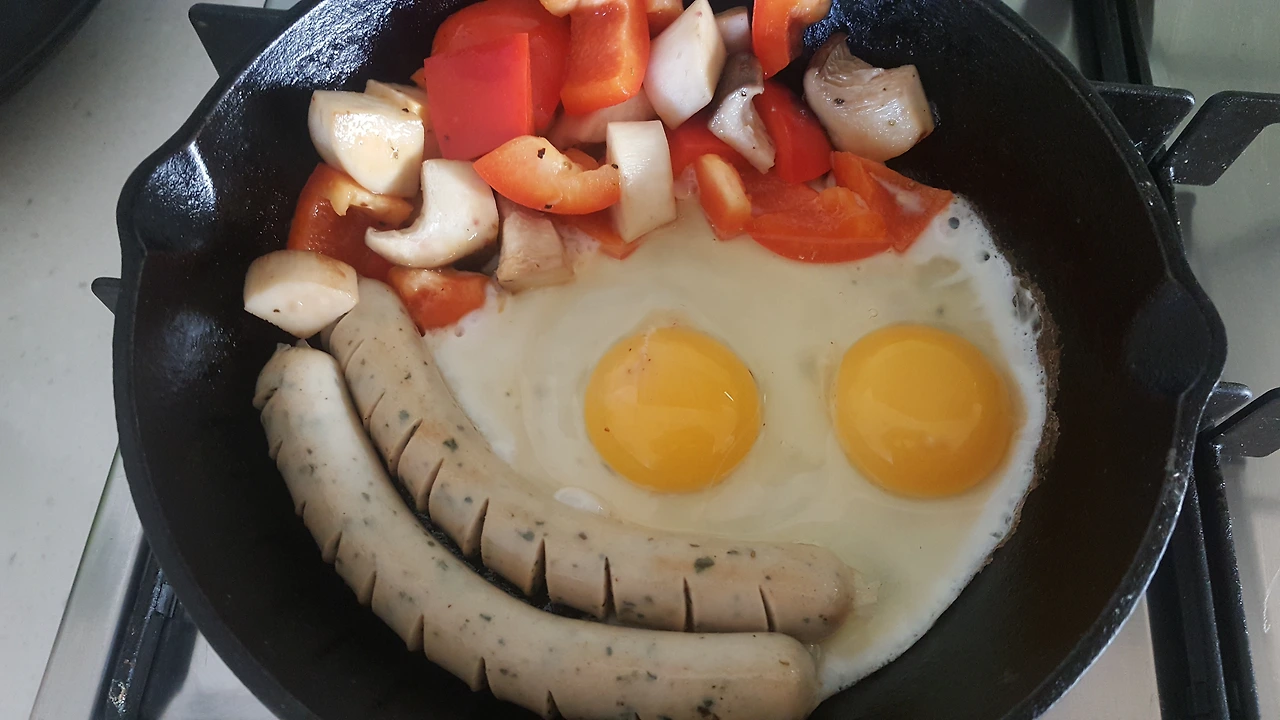 잘 달궈진 롯지 팬에