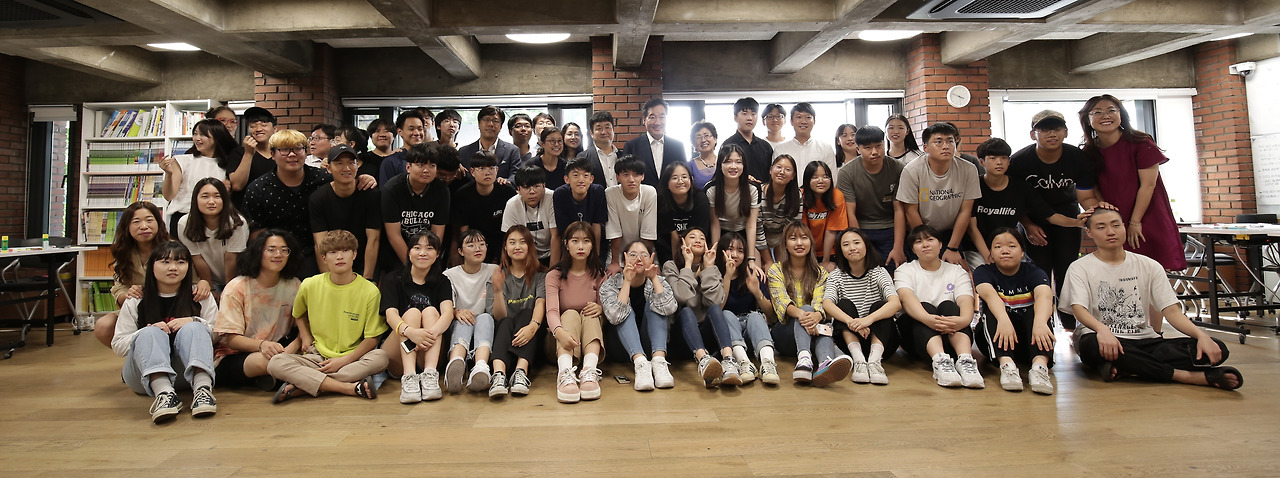 첫 순서였던 대담에는 거꾸로캠퍼스의 학생, 교사, 학부모가 참석했고, 이 총리는 한 명 한 명에게 조심스레 질문을 이어나갔습니다. 대담은 거꾸로캠퍼스에 투자하는 씨프로그램의 교육서재 온더레코드에서 30여분간 진행됐습니다.