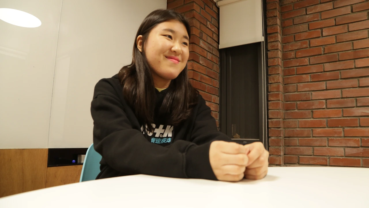 "거꾸로캠퍼스에 왔는데, 생각보다 너무 힘든거에요. 자꾸 의견을 말하라고 하니까요. 처음엔 '여기서 살아남으려면 공부를 해서 의견을 만들어야겠다'는 생각이었어요. 처음엔 너무 힘들었죠. 매 수업 마지막마다 발표를 했거든요. 그 PT를 만들 때마다 무슨 내용을 넣어야 하는지 뭘 어떻게 말해야 하는지 모르겠는거에요. 그래서 그 때 자기 의견을 자신감 있게 말하는 사람들을 보고 많이 배우려고 한 것 같아요. 선생님들한테 추가로 뭘 질문하거나, 필요한 걸 말하는 것도 어려웠어요. 예전학교에서는 안그랬으니까요. 근데 거꾸로캠퍼스에선 그런걸 해야 하는 거잖아요. 그래서 그때는 할 것도 없는데 끝까지 남아서 막 다른 사람들 뭐하는지 보고, 했었어요."