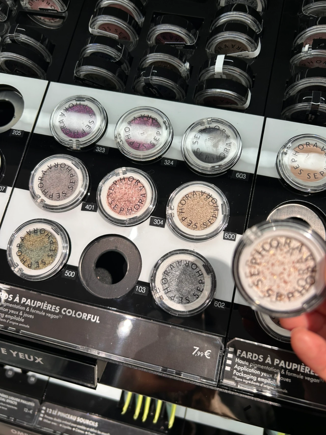 색조에서는 확실히 펄감이 우리나라보다 훨씬 강하고 (펄의 양과 크기) 색감 역시 (발색 및 색상 강도) 굉장히 큰 차이가 있음을 알 수 있었어요. 단컬러 가격대는 8유로, 1만 원대로 저렴하지 않음