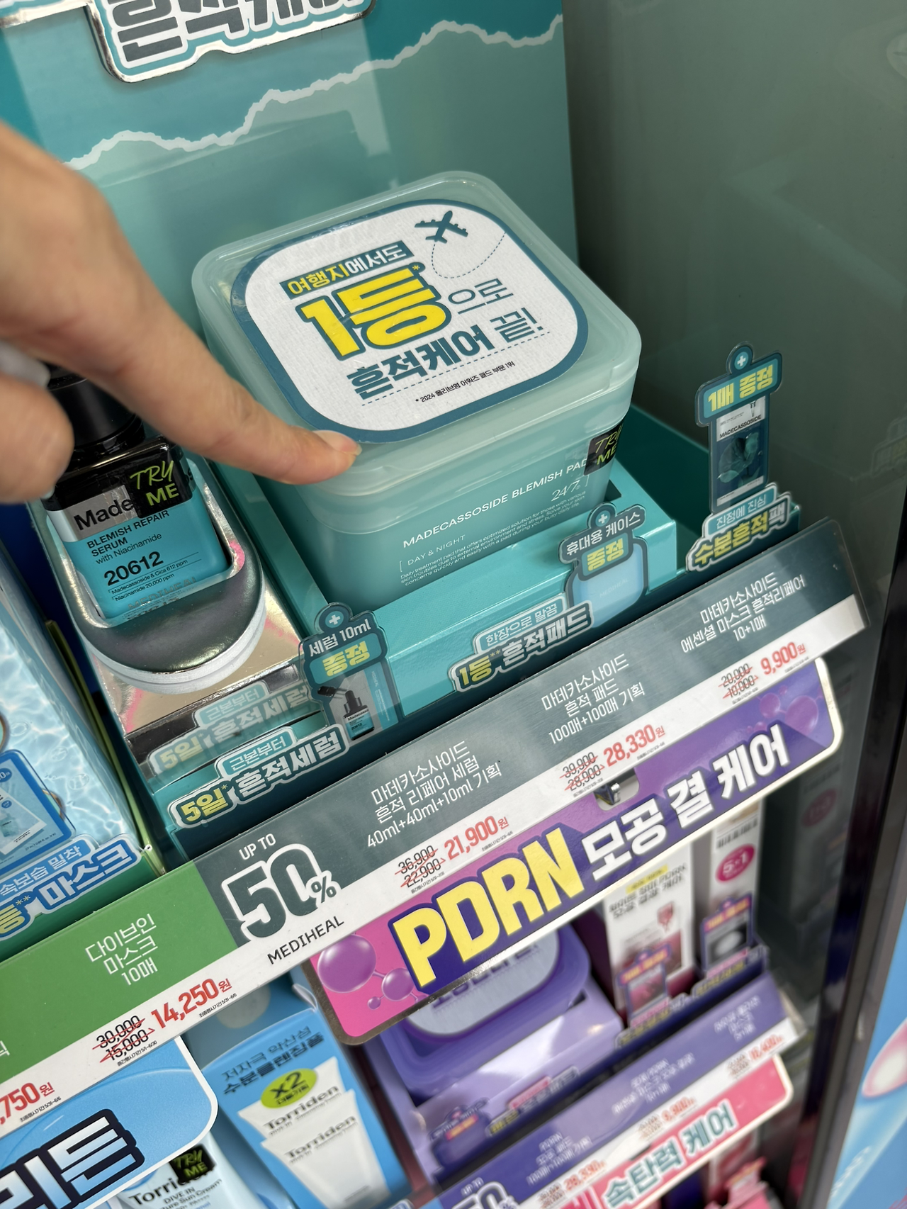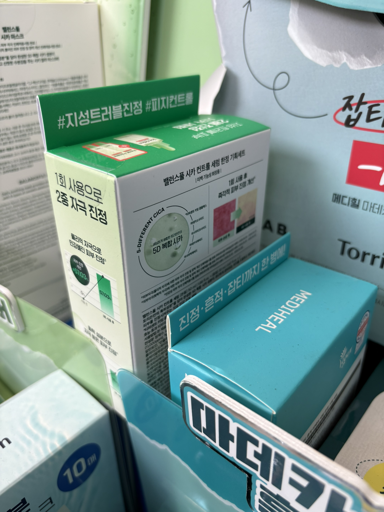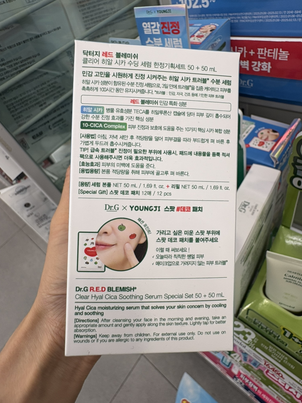 수딩 세럼 판촉으로 스팟 패치를 구성해 두었네요. 그래도 아직 해외에서는 이 트렌드가 있기 때문에 반영한 것임을 알 수 있었어요.