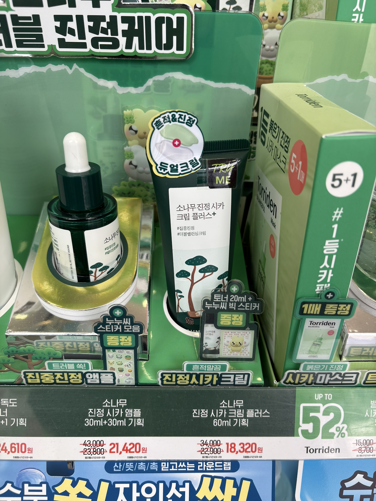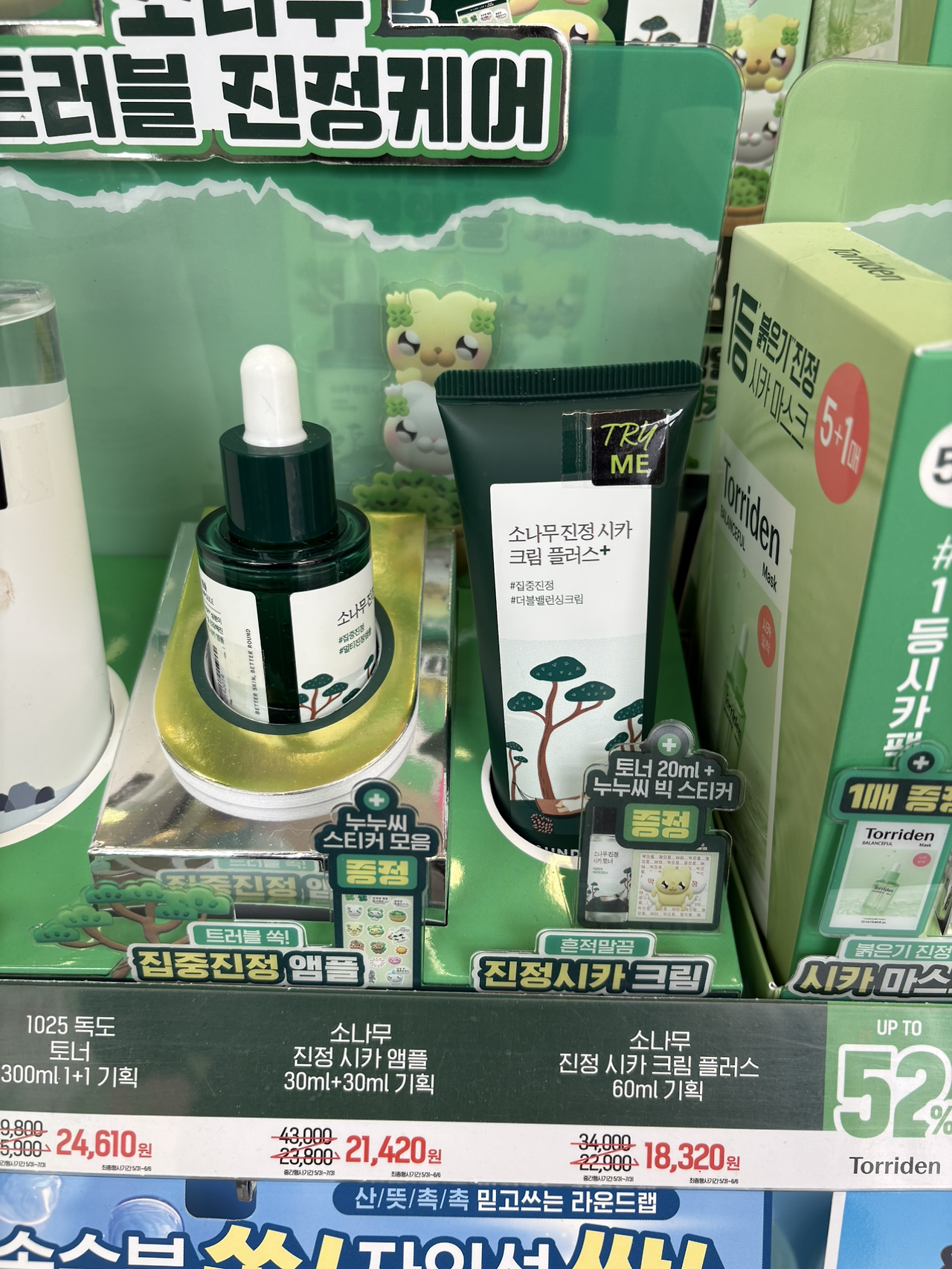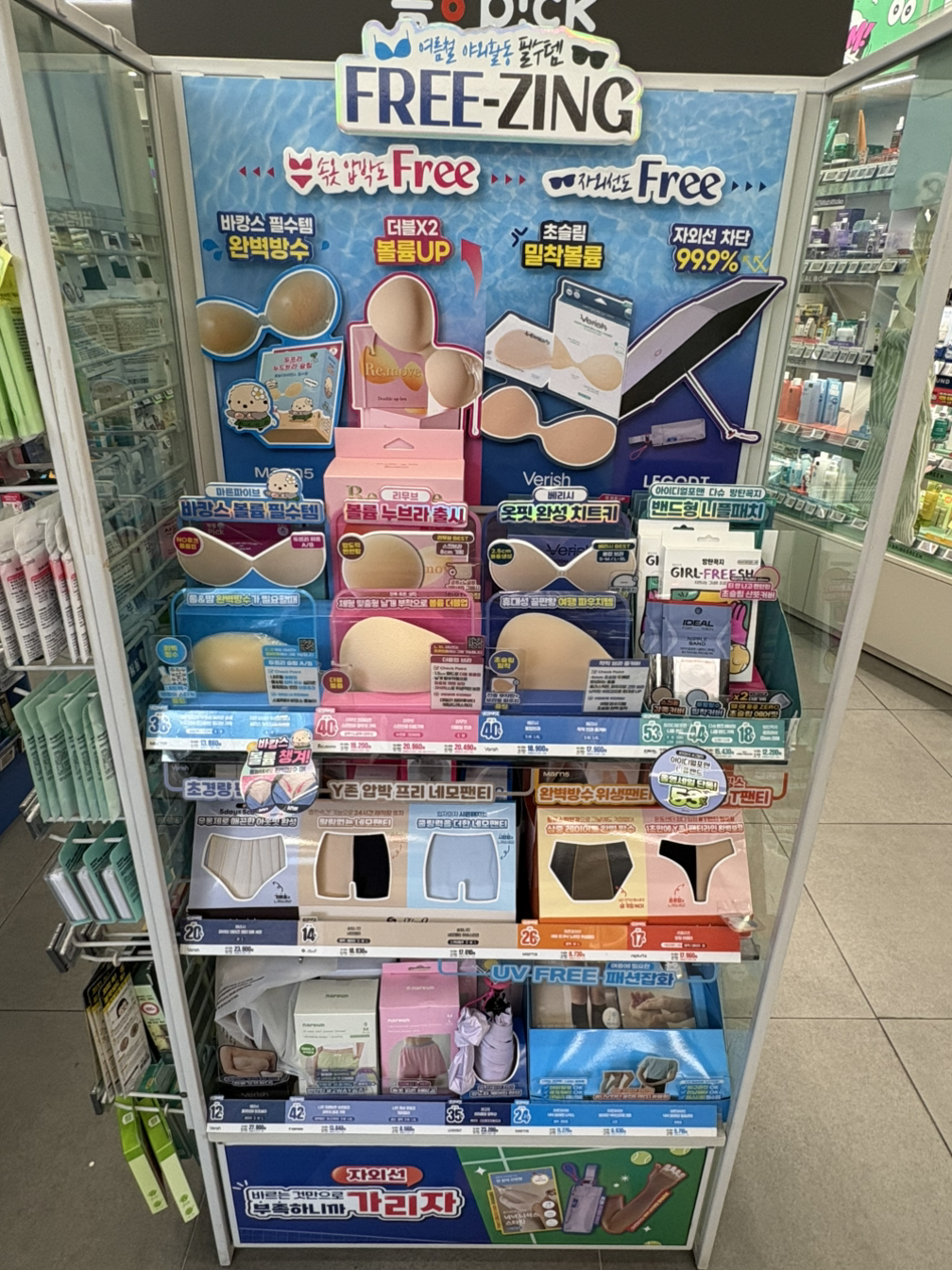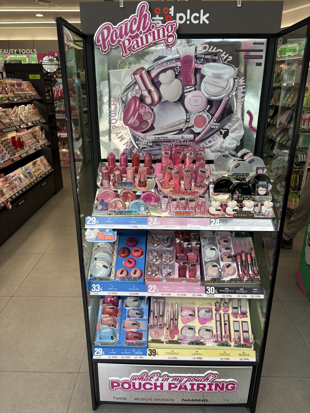 이번 매대는 선케어와 클렌저 포함 스킨케어 등 아주 짬뽕 매대네요.