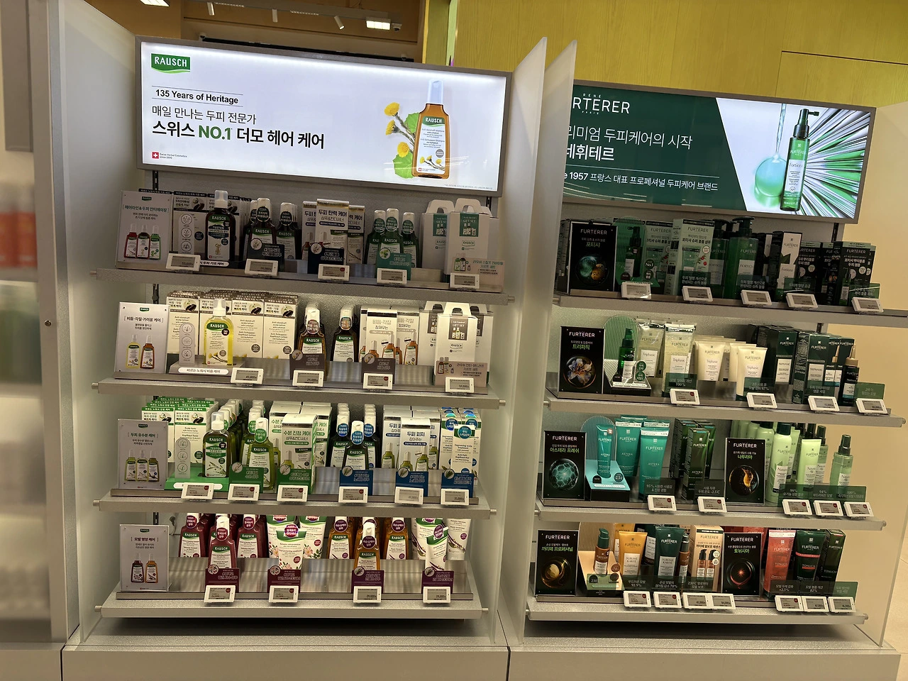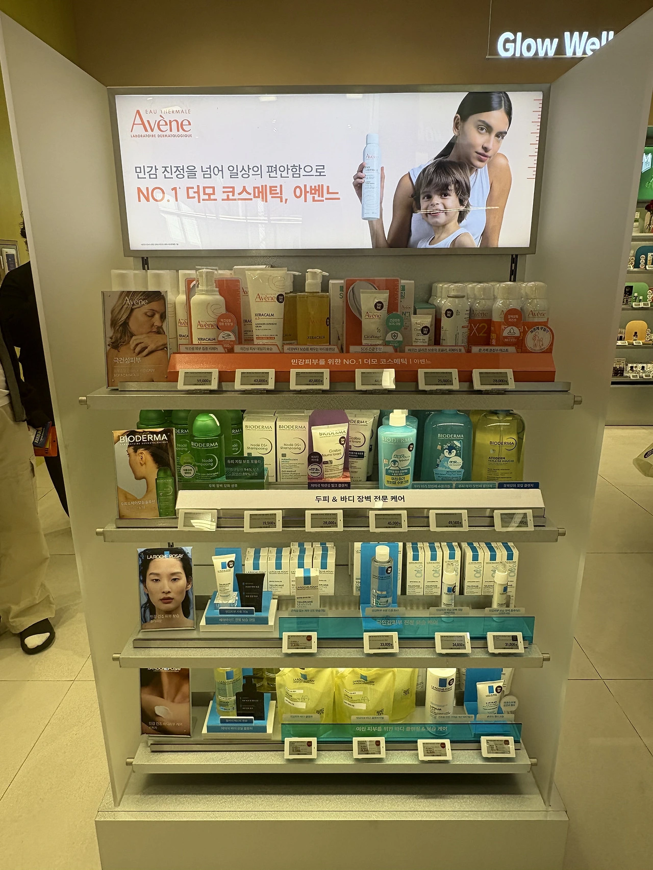 엔드매대 상단의 아벤느가 아무래도 가장 큰 비중으로 보이는데, 아벤느와 눅스의 피에르파브르 쪽 브랜드를 집중했음을 알 수 있습니다. 이 두 브랜드 모두 최근 역신장으로 느껴지는데, 이유는 모르겠지만 암튼 집중해서 보여주고 있었어요.