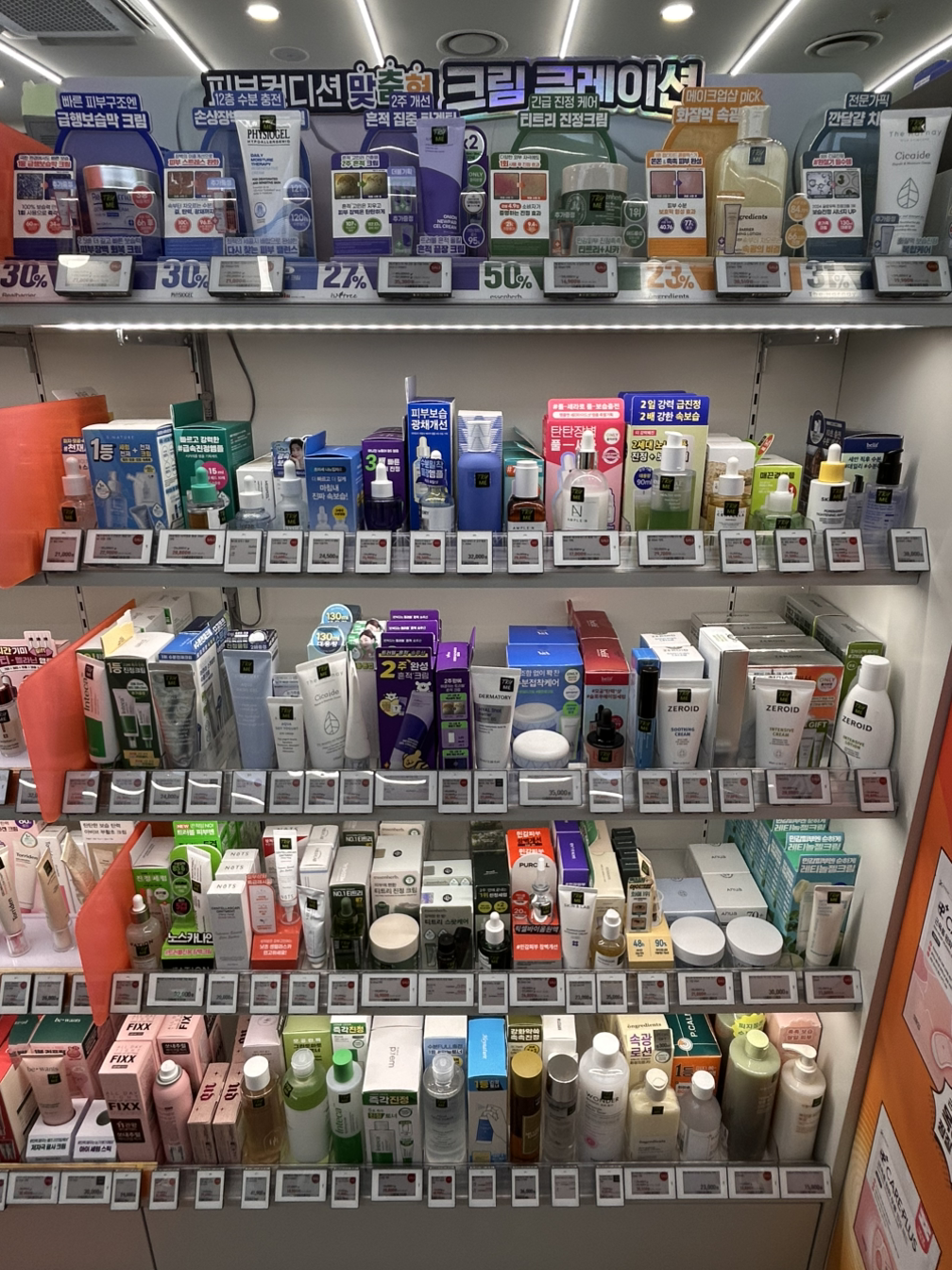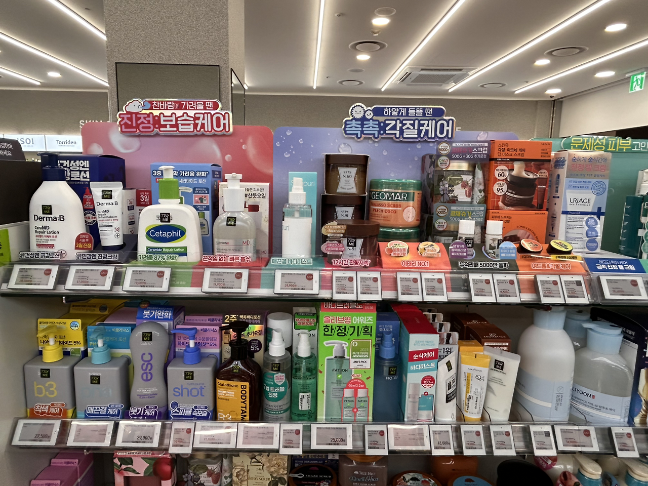 지난달에 이어 바디 카테고리 곤돌라 쪽은 동일하게 1단을 운영하고 있음을 알 수 있었어요. 확실히 최상단에 백보드로 시선을 잡아주기 때문에 훨씬 바디 곤돌라가 덜 지저분해 보임을 알 수 있습니다.