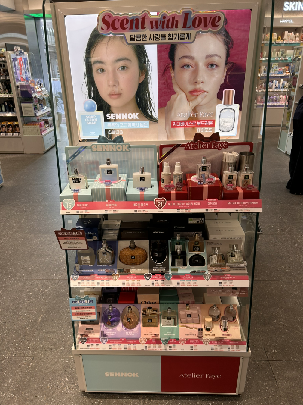 2월이다 보니 향수 매대가 있는데, 여기서 주의 깊게 보이는 부분은 최상단(1단)에 있는 제품 구성입니다.
