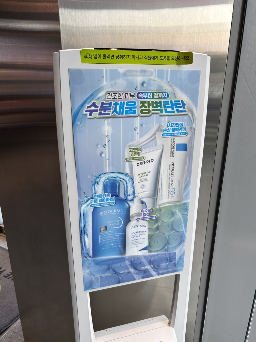 프로모션 매대 컨셉 : 건조한 피부 속부터 겉까지 수분채움 장벽탄탄